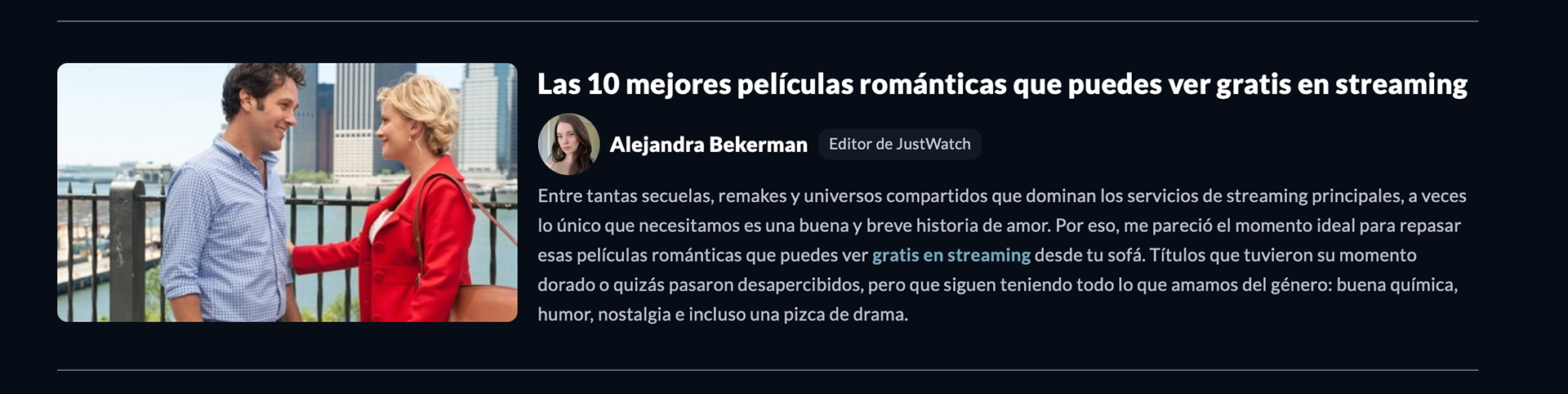 As a Spanish Content Writer and Editor at JustWatch, my role revolves around creating and tailoring engaging content specifically for Spanish-speaking audiences. I curate compelling narratives and descriptions that resonate with the Latin American & Spanish market, focusing on ensuring the content is not just translated, but culturally adapted for the region's audience. Crafting movie/TV synopses, streaming service descriptions, and informative articles, I strive to capture the attention of Spanish-speaking users by creating content that is not only informative but also culturally relevant and appealing.